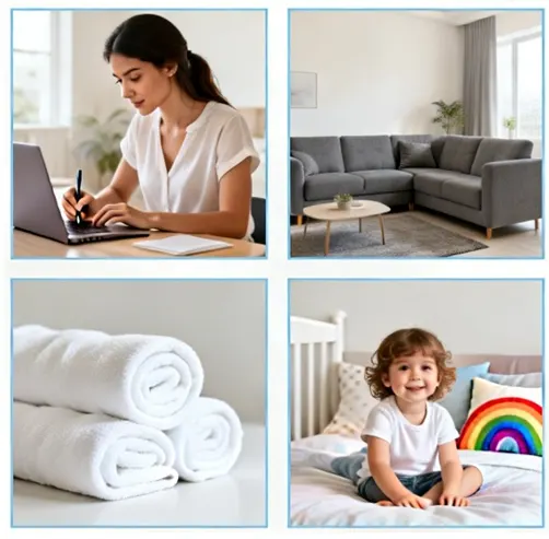 Dusting surfaces and blinds in all rooms – Vacuuming and mopping floors – Cleaning bathrooms (toilet, sink, mirrors, and surfaces) – Cleaning kitchen surfaces and appliance exteriors – Trash removal and light organization.